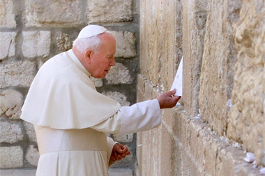 Suite à une liturgie de Carême pendant laquelle il a demandé pardon à Dieu pour « le comportement de ceux qui ont fait souffrir vos enfants » , le pape Jean-Paul II entreprend une visite en Israël, durant laquelle il se rend au site le plus sacré du judaïsme, le Mur des Lamentations [le Mur Occidental], et place dans le mur une copie de sa prière.
